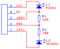 下图为 IRDA 提供的红外通讯电路标准方案。