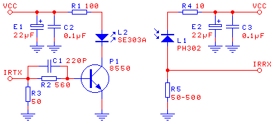 下图为本人根据试验整理的红外通讯电路增强方案。