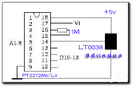 解码电路 PT2272 引 脚 图: