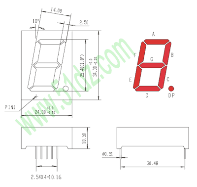 数码管分为共阳型和共阴型,共阳极型就是发光管的正极都连在一起 ,作为一条引线,负极分开。数码有尺寸大小之分,所以价格也各不一样,本数码管8字高度:1英寸 / 25.40mm,大小:24.00×34.00×10.50mm,欢迎大家选购。