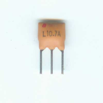 10.7M三脚陶瓷晶振,用于调频收音机中,如本站调频收音机都有用到。