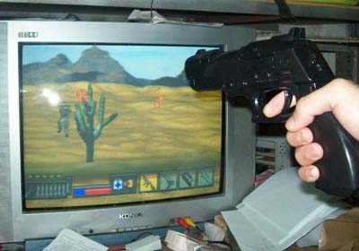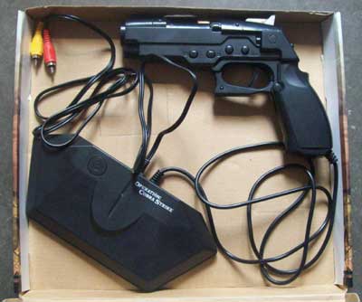 本游戏机采用电子芯片控制技术,可以在电视机上显示出稳定的彩色图像,进入游戏画面后,在显像管电视机上,还可以显示红色十字光标,用枪可以控制光标移动,扣动板机可以完成射击功能。